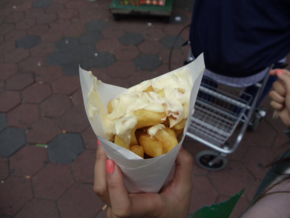 Unfortunately, since I’m writing these entires so long after the trips, I don’t remember a lot of what I ate. But I do have this one picture of a cone with fresh hot fries in it and a creamy sauce drizzled on top. That’s one thing I will remember to eat when I go back!
